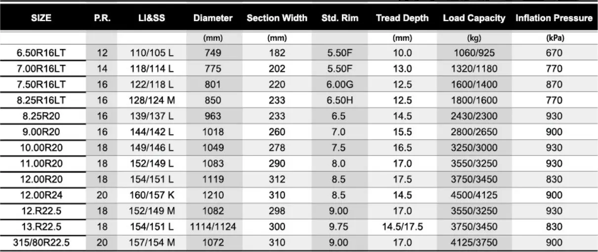 Resistance to cut chip & stone retention. Wide tread for long life and uniform wear. Excellent driving stability,traction and durability. All position tires for city and highway service.