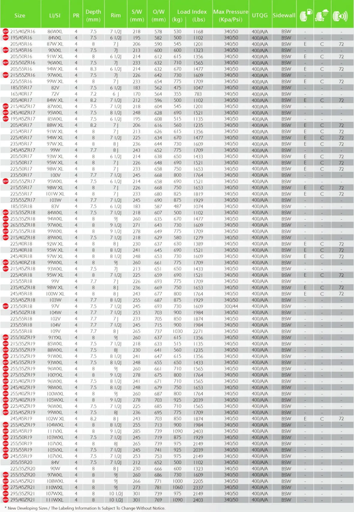Asymmetric tread pattern design and functionally differentiated in medial and lateral sidewall improve steering performance in wet road conditions, and ensure high-speed stability.